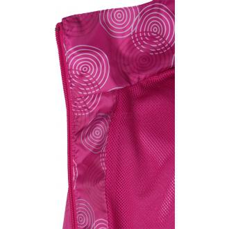 hlavní zip je podložen légou a v horní části zakončen ochranou brady vůči oděru